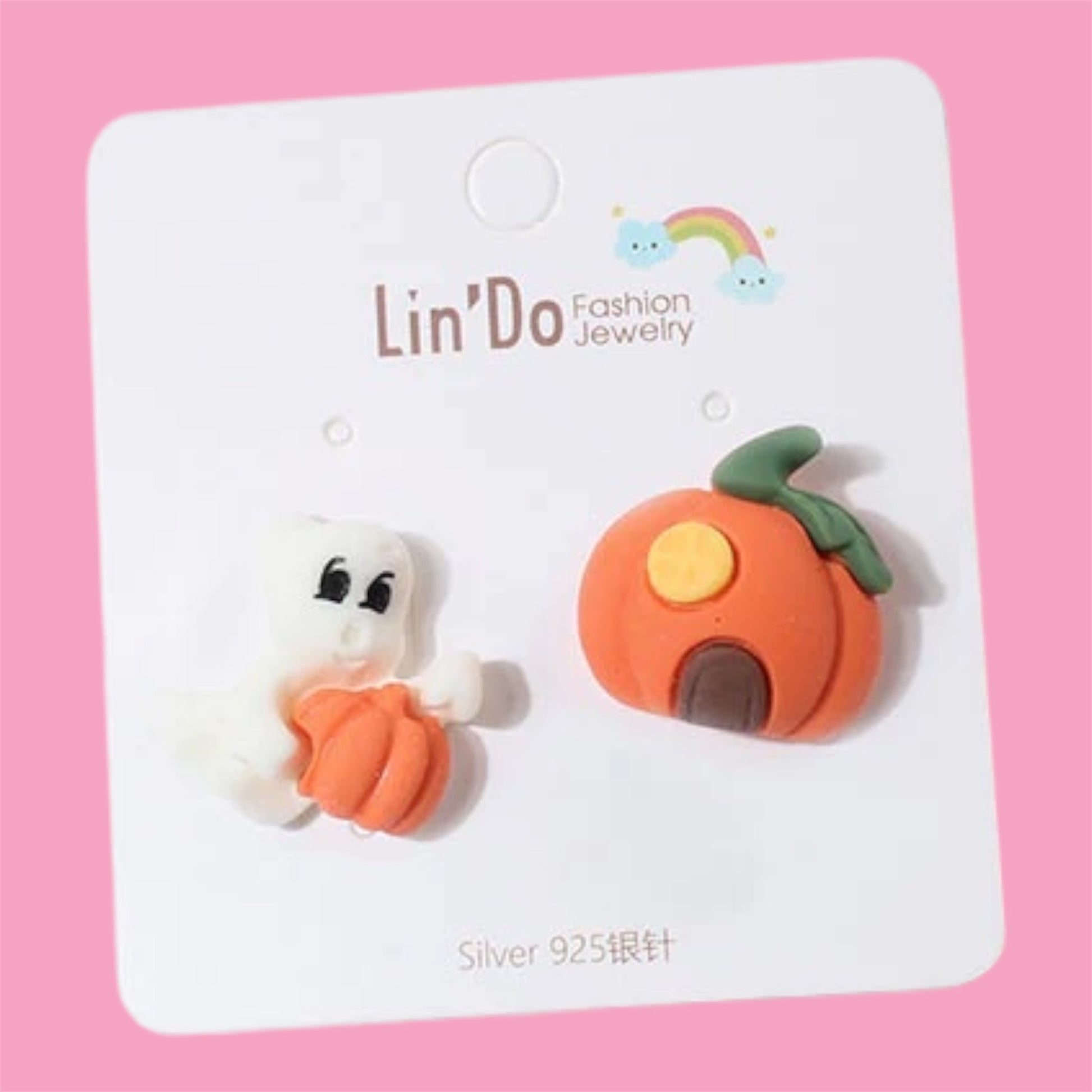 Estos aretes de fantasmita y calabaza en resina de alta calidad son ideales para complementar tu disfraz de Halloween. Con un tamaño de 2 cm de ancho por 1.5 cm de alto, son ligeros y cómodos de llevar. ¡Agrega un toque terrorífico y divertido a tu atuendo con estos accesorios únicos!