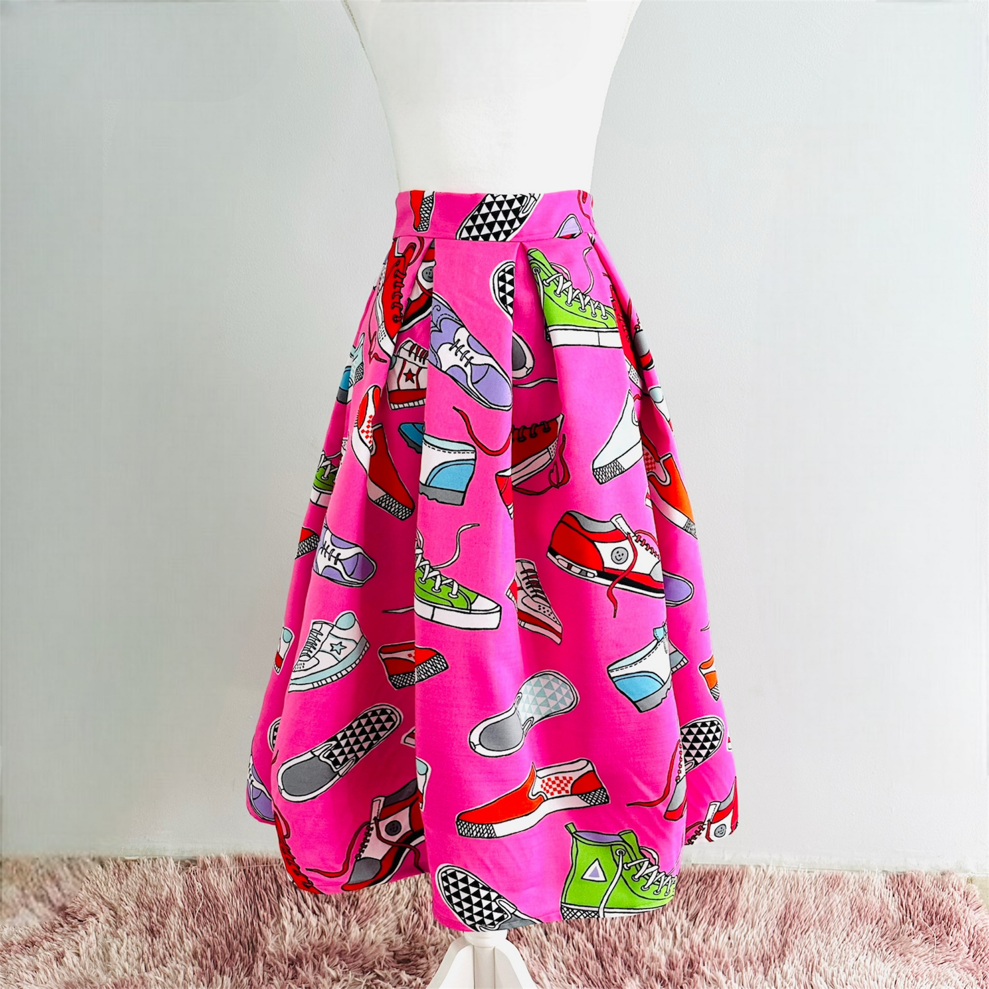 Falda midi con forro, diseño de zapatos
