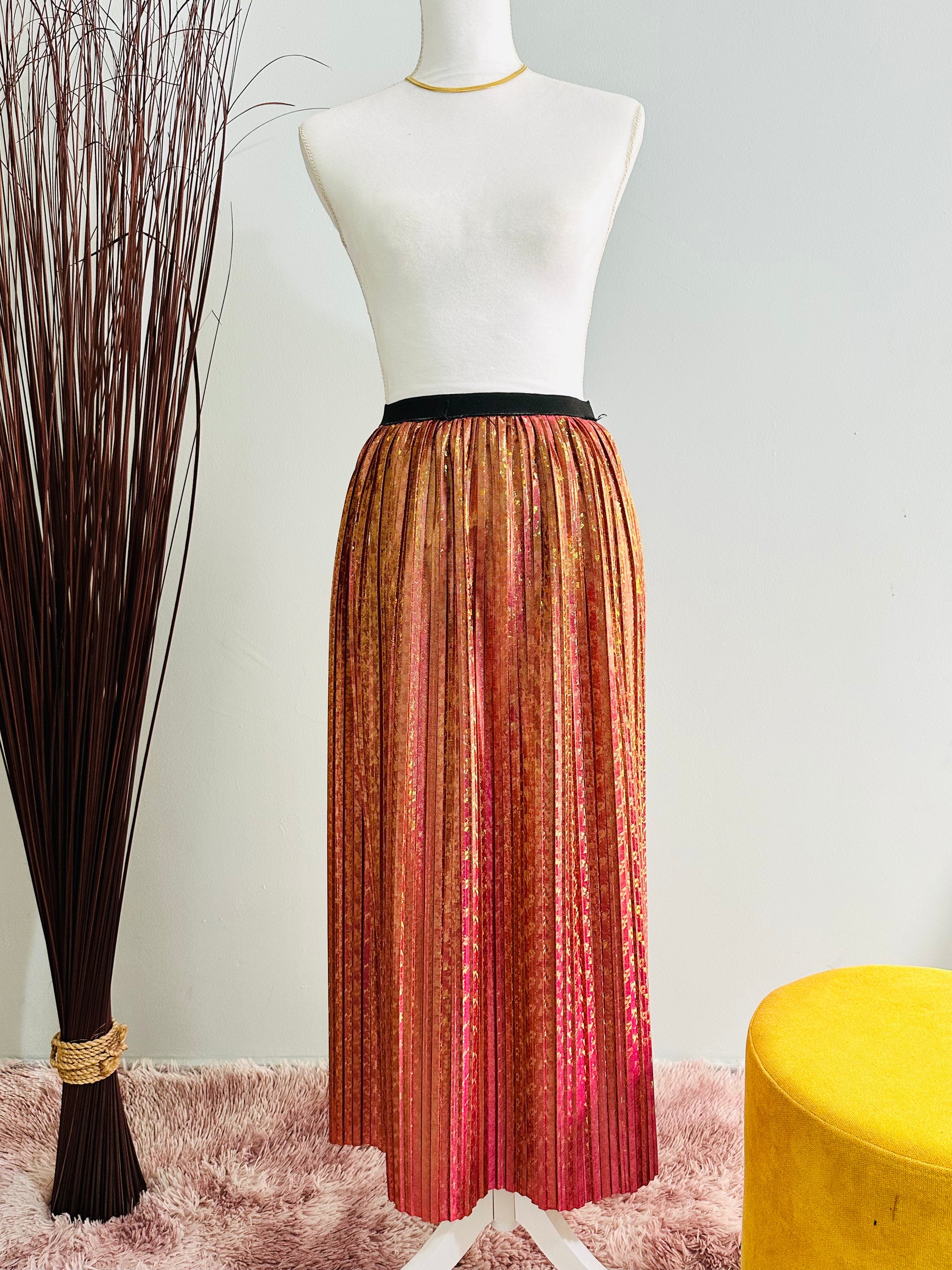Falda midi tornasol rosa